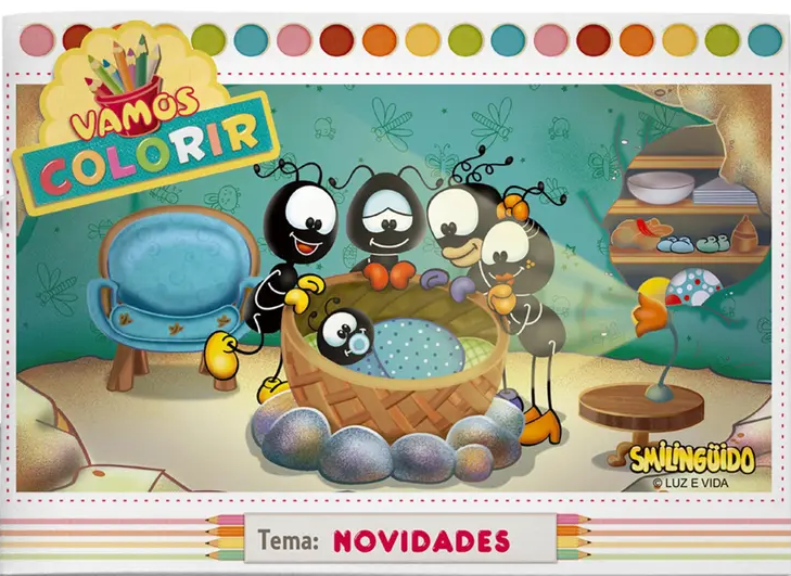 Vamos Colorir é uma série de livros para colorir com a turma do Smilingüido. Cada um deles apresenta um tema por meio de oito páginas ilustradas com mensagens bíblicas exclusivas para todas as faixas etárias.